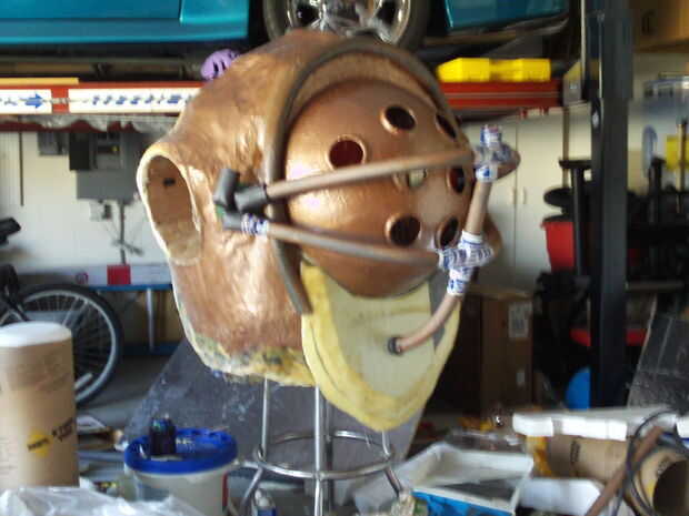 Después de que la pintura cobre esté seca. Utiliza el negro a la edad de la pintura del metal por pintura de manchas y el roce con una toalla. Entonces Gore rojo para darle un toque sangriento.