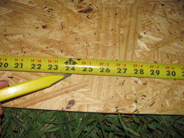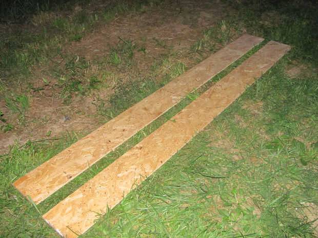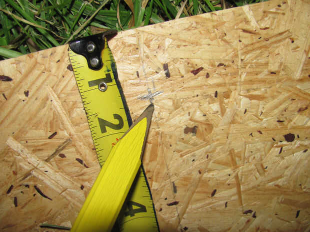 Uno de los tableros y marcas de cruz cada 24" largo y 1 1/2" de los lados. Un total de seis marcas de agujero por tablero.
