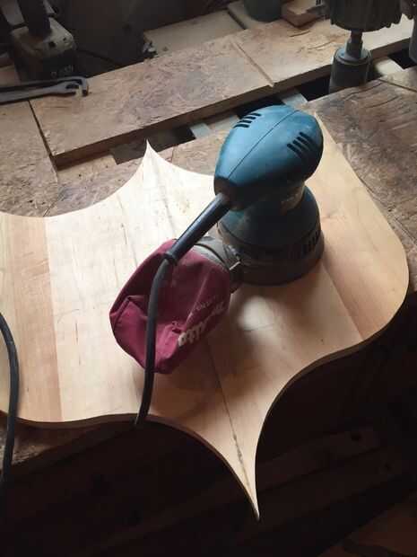 Después de esta Junta estableció, tomé una lijadora orbital a las caras de los tableros para eliminar mis marcas de lápiz y también para ayudar a eliminar cualquier pegamento que empujó hacia fuera de la articulación. Tomé la pieza a la lijadora de tambor para hacer mis bordes acabados del diseño original. Luego usé un poco de ogee router y 3/8 de pulgada para colocar un detalle en los bordes exteriores del Monte.