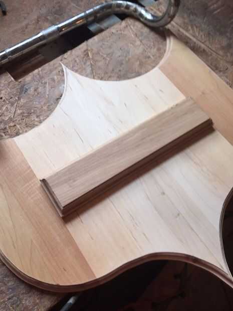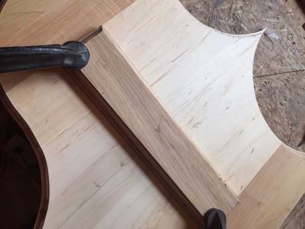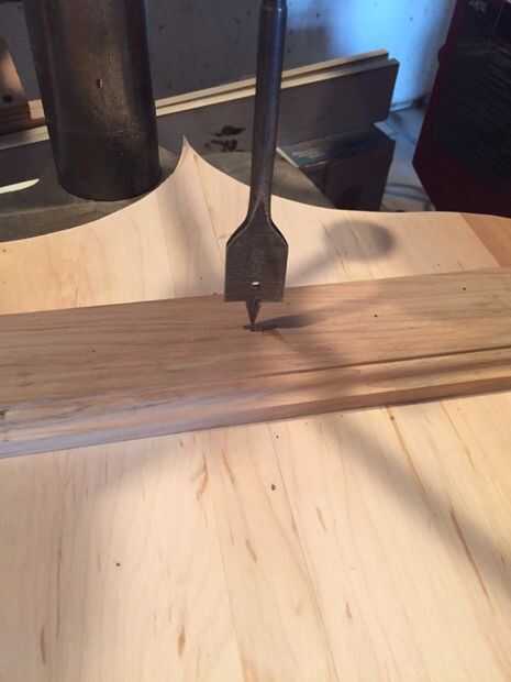 Encontré el centro en la pieza de madera de nogal y utiliza una paleta de 7/8 de pulgada broca para taladrar un agujero en la pieza de apoyo de la nuez y el Monte. Pude entonces ajuste seco la caída de barras para el soporte y apretar todo. ÉXITO!!!!!!