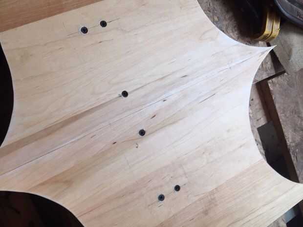 Caída de barras conectan una bicicleta al permitir que un ciclista a un tornillo de allen para apretar o aflojar una cuña de metal en el extremo de la barra. Puesto que la longitud total de esta cuña de 1 1/4 pulgadas, he tenido que añadir otro 3/4 pulgada pieza al frente de la montura para asegurar una conexión apropiada entre el Monte en las barras de la gota. Usé un 11 pulgadas por pulgada de 2 1/2 pieza de nogal para obtener que la longitud. Después de aplicar el mismo diseño en los bordes con el Sigma de 3/8 de pulgada del pedacito, centra la pieza en el frente de la Junta, medir mis distancias, volcó la Junta y había conectado la pieza frontal de la nuez al soporte girando juntos por detrás con tornillos para madera 1 1/4 de pulgada.