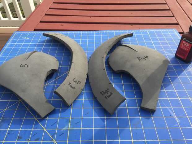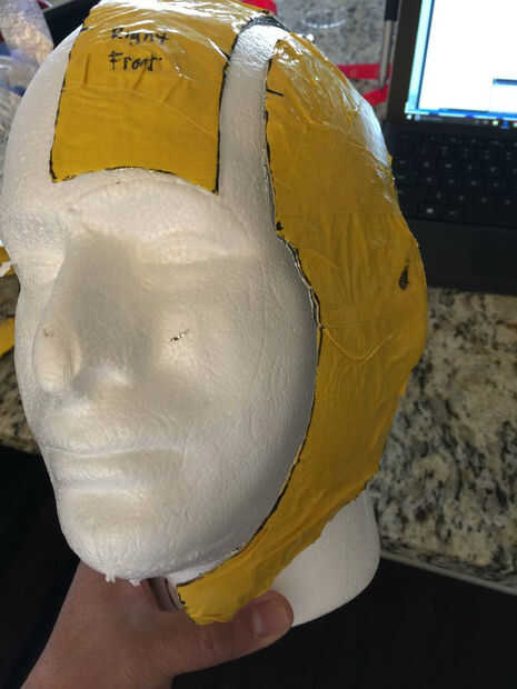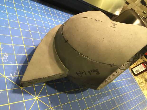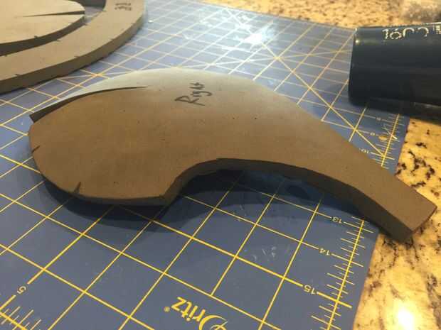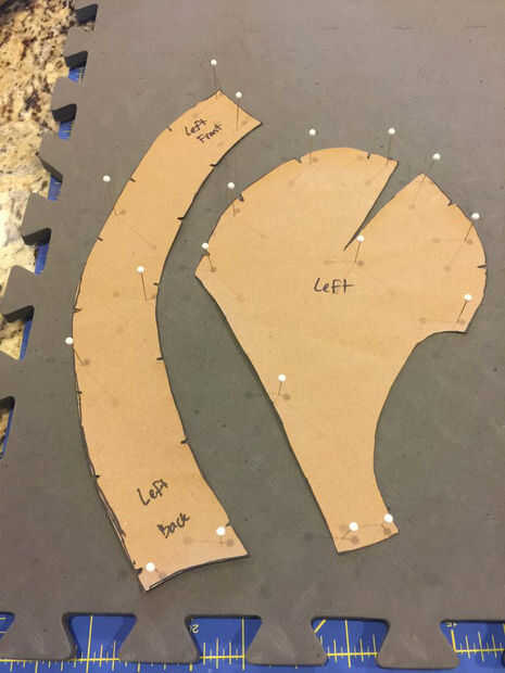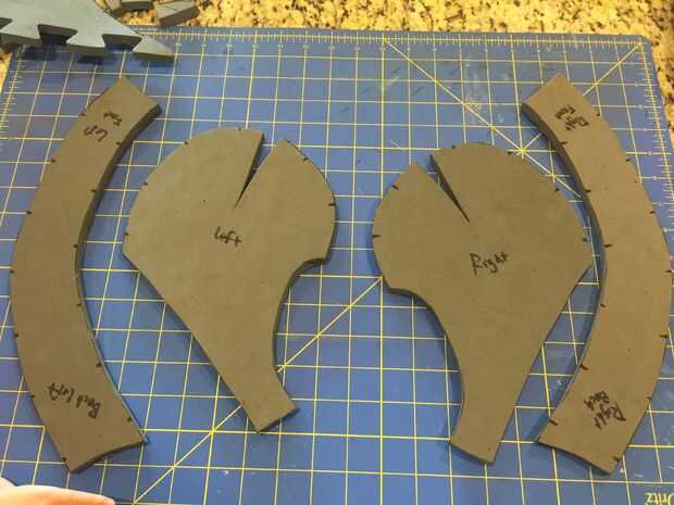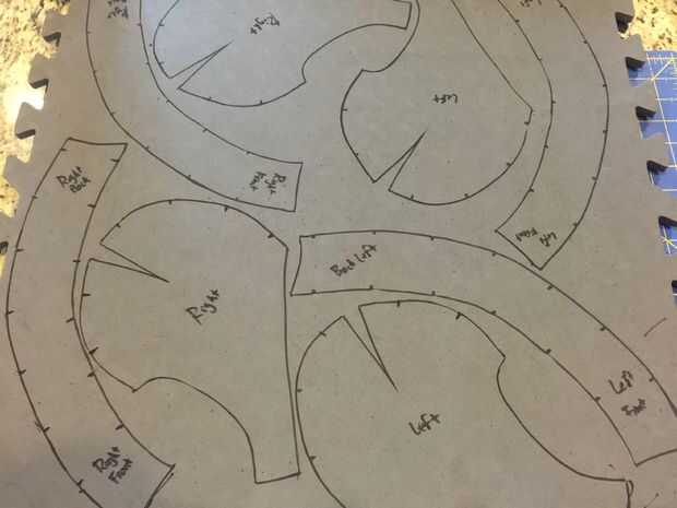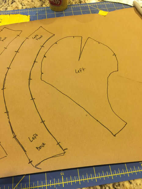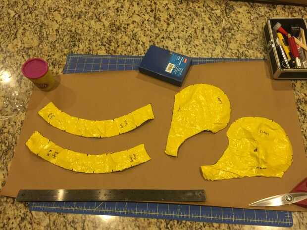 - Prender los patrones de papel para la espuma de gimnasio (lado liso). Trace una línea alrededor del patrón de papel. PRO TIP: Escoge cualquier conjunto de un lado (izquierdo o derecho) de patrones para transferir a la espuma. Traza un lado del patrón a la espuma, luego voltear sobre el patrón para obtener una imagen del espejo. Trazar esta imagen de espejo en la espuma. Esto garantizará un patrón más consistente para ambos lados del casco haciéndolo uniforme.