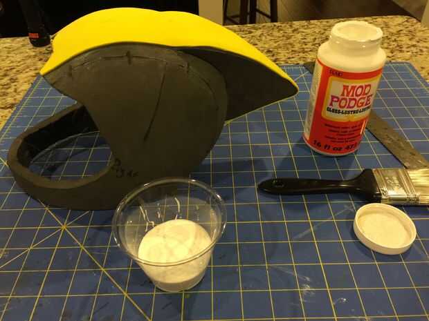 - Aplicar una capa de Mod Podge sobre el casco entero. Deje que se seque.