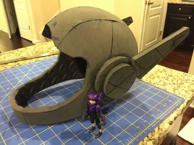 - Casco de Hiro Hamada tiene dos aletas de la antena a cada lado de la cabeza. Crear un patrón de papel después de estas antenas aleta y transferir el patrón sobre la espuma del gimnasio. Cortar círculos extras para extender las antenas aleta hacia fuera más lejos.
