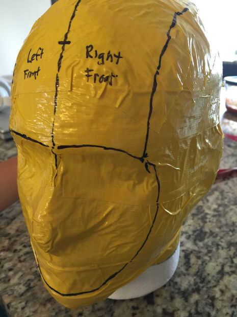 - Marca el molde principal creando una línea de centro de la frente hasta la base posterior de la cabeza. Haga marcas de 2 pulgadas. Esto hará que montaje más fácil para usted más tarde.