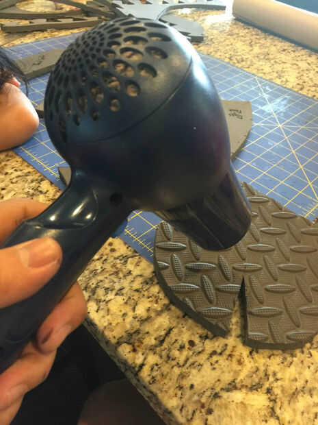 - Utilizar el secador de pelo para calentar la espuma. Cuando esté todavía caliente, doblar la espuma a una curva para seguir la curva de la cabeza. PRECAUCIÓN DE USO COMO LA ESPUMA ESTARÁ CALIENTE!