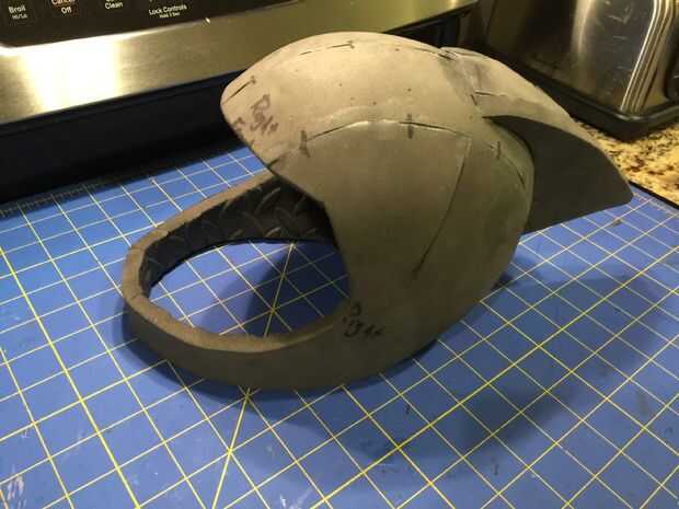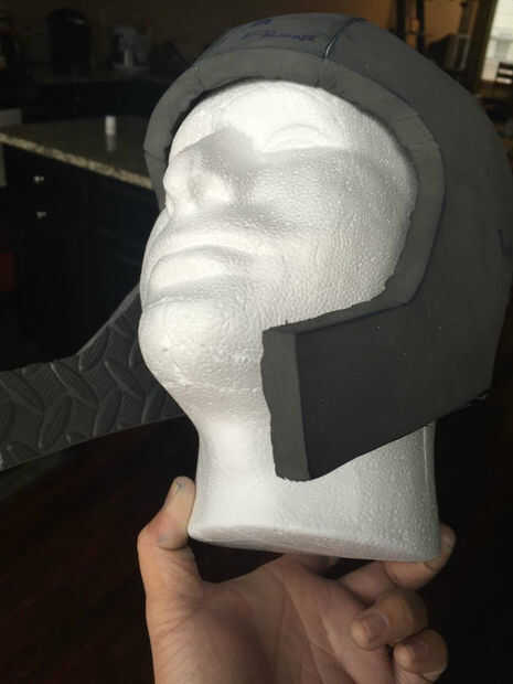 - La pieza de la barbilla del casco debe extenderse hacia adelante ligeramente. No debe tocar la barbilla del portador pero debe ser suficientemente ancha como para dejar que la persona a usar el casco de forma cómoda. Use espuma extra para formar la barbilla.