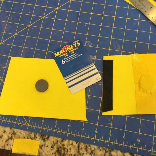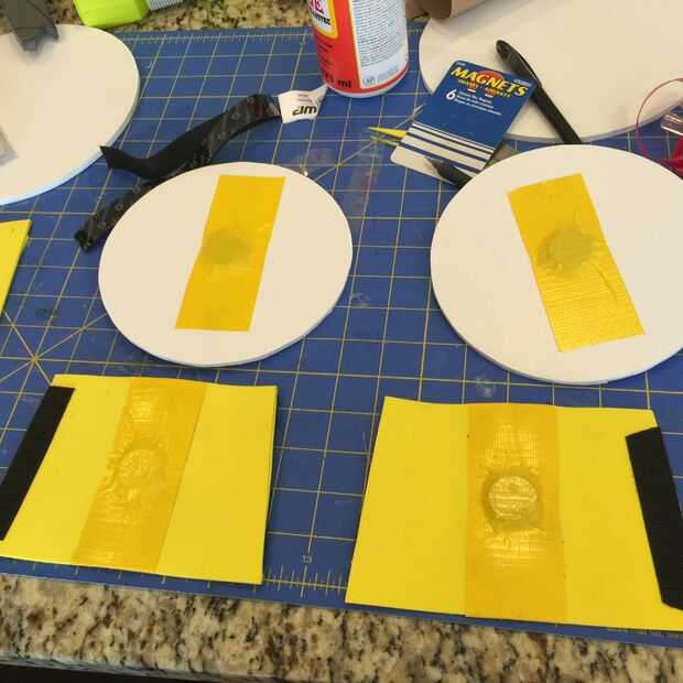 - Utilice el mismo patrón circular utilizado en el disco y cortar espuma amarilla con el mismo patrón.