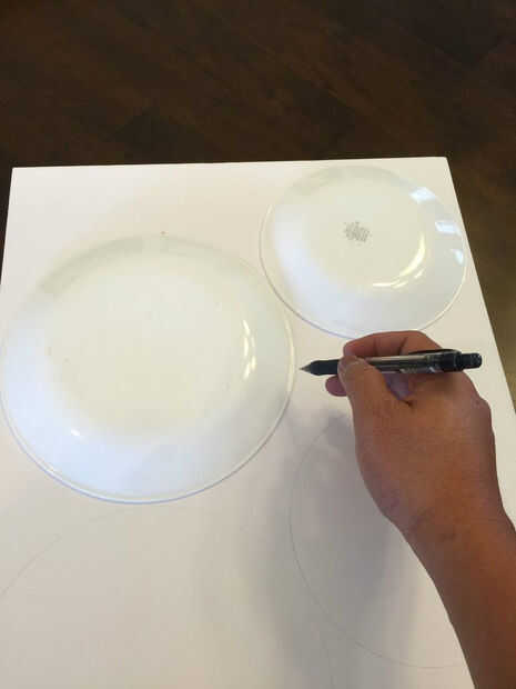 - Utilice un patrón circular (utilicé un plato pequeño) y trazar sobre un tablero de la espuma.