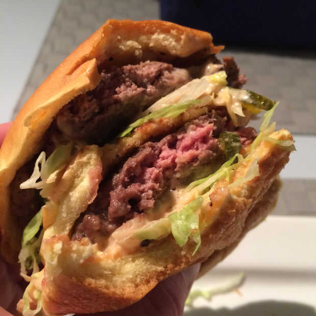 La idea de asar una hamburguesa es algo que más puristas de la hamburguesa no consideran. La jugosidad de llama asada a la parrilla de una hamburguesa a la plancha, dicen, no puede ser duplicada en el interior. Y ¿qué pasa si quiero una hamburguesa e