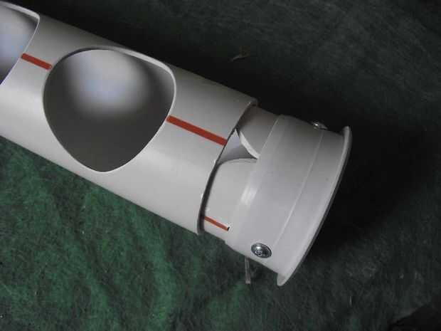 Una de las tapas en blanco cabrá en el extremo abierto de uno de los tubos. Sólo Enchúfelo después untando vaselina en la arandela de goma.