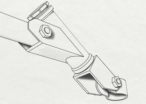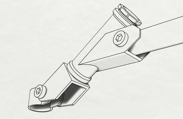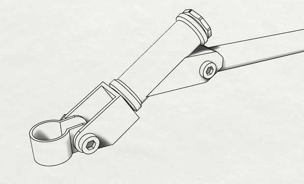 Utilizamos una parte delantera kick scooter, que parece tan perfecto para ello. De hecho el anillo atado en lugar de la rueda será coaxial al tubo del asiento y ambos eje de rotación vertical y transversal de no añadir ninguna torsión en la tija. El mecanismo del volante vespa actúa para liberar la última rotación del eje longitudinal, aunque no está en la dirección horizontal exacta. De hecho el eje de rotación de tres necesitan no ser alineado, pero no exactamente perpendiculares entre sí. Como se verá en la siguiente animación este eje inclinado ayuda a dirigir.