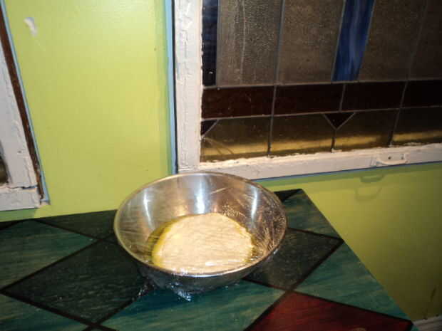 3. Transferencia es también un recipiente grande que tenga 1/8 taza de aceite de oliva que se arremolinaba alrededor en él, cubra con envoltura de plástico y poner en un lugar fresco.  Minas fue por la ventana.  Vitrales antiguos además de vientos de invierno-20 fresco fuera igual.