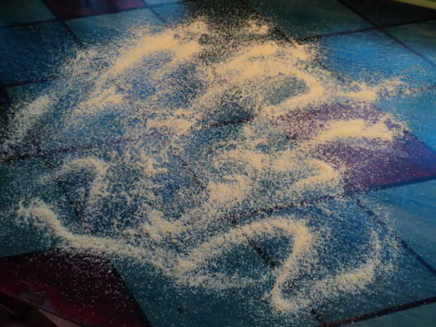 - Espolvorear la superficie de trabajo pesadamente con harina de maíz