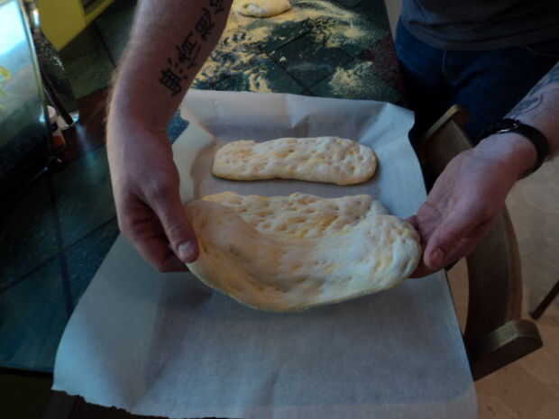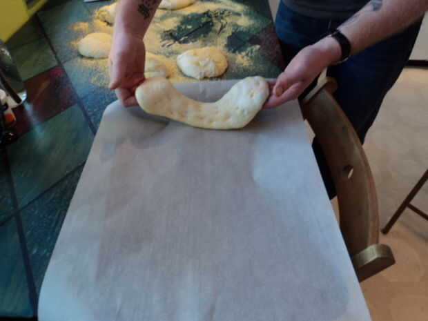 - Es el momento para desarrollar adamantium puntas de los dedos, hacer una garra como forma con los dedos y apuñalar a la masa hasta que penetre. Hacer esto en toda la superficie de las masas, puede limitar qué tan alto puede levantarse la masa al hornear y dejar agujeros bonitos aceite de oliva en.