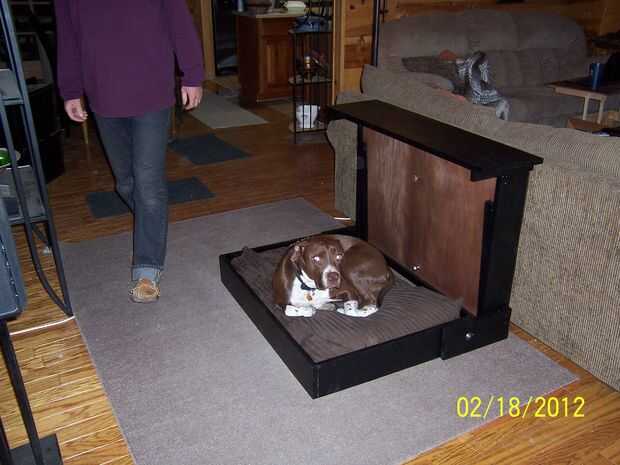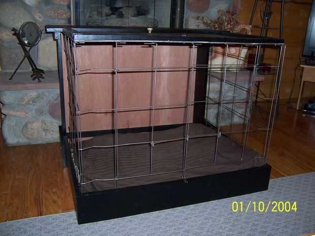 Mi hermana tiene un pitbull energético Elwood, no un medio hueso en su cuerpo, que tiende a meterse en problemas si lo dejan libre mientras que ella se ha ido. Ella tiene un criadero para lo que es enorme y feo, pero necesario. Pensé que sería bueno para los dos si tuvieran una perrera que podría estar ocultos cuando no en usan y mezclan con el resto de los muebles. Entonces pensé por qué no tener su cama y la jaula por separado accesible. Pensamiento de camas de Murphy y de cómo pliegan y decidió hacer uno para Elwood con una jaula integrada. No tengo una tienda o una gran cuenta bancaria, pero creo que salió bastante bien. Esta es mi creación y me gustaría decirte cómo se hace, creo que muchas personas y sus perros lo agradeceria tener uno en casa. Que coste sobre total de $65, mucho más barato que un criadero tienda compró del mismo tamaño.