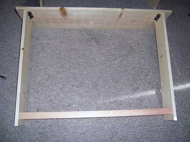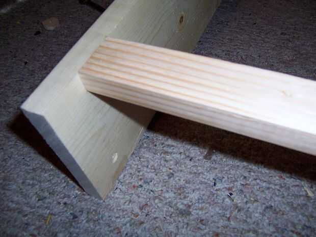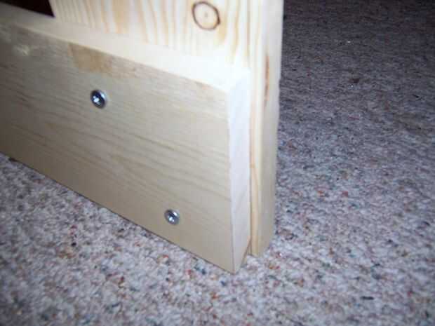 Ahora corte 2 -13 "piezas de 1" x 6". Coloque uno al final de cada pata del marco, en la parte exterior de cada pierna. Serán perpendiculares a cada pierna, formando "pies" en la parte inferior. Utilice su escuadra cuando estas alineando, por lo que defenderá el marco agradable y recta. Ahora verticalmente y su nivel para verificar que se encuentra a nivel, hacer los ajustes según sea necesario.