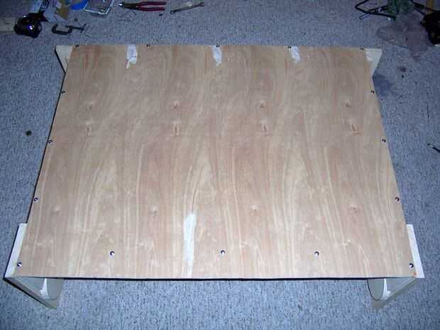 OK, te sello para arriba la parte posterior ahora.  Exponer la parte posterior, mida y corte un pedazo de la madera contrachapada de 5mm para encajar. Fije la madera contrachapada.