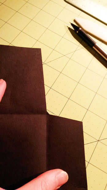 4. Marque el papel 1/4 de pulgada de cada pliegue en el borde. Básicamente, usted necesita las cuatro aletas para cortar hacia adentro a un smidge.