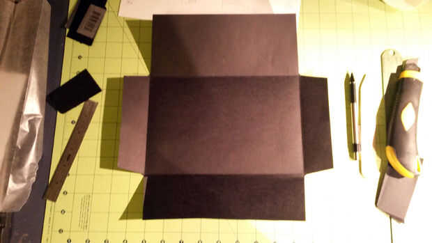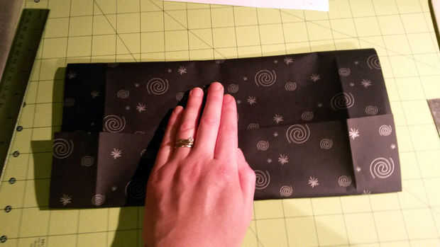 6. doble las aletas izquierdas y derecha y marca donde la solapa inferior se les superpone.