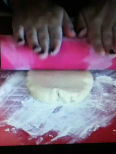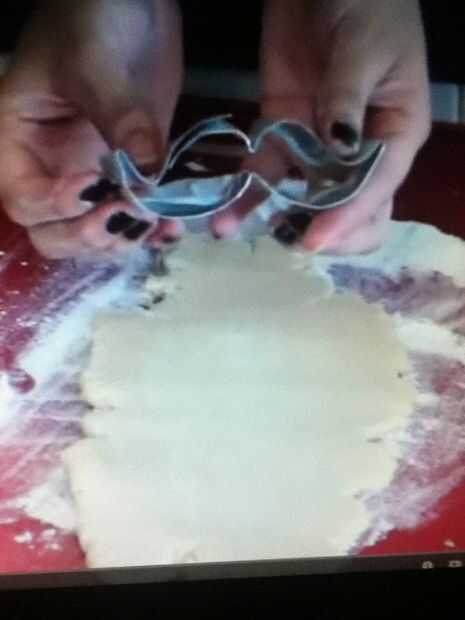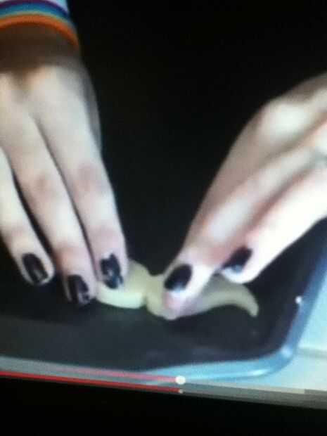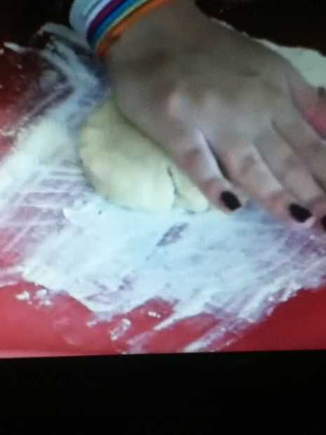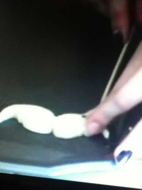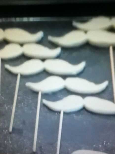 Ponga la harina sobre la masa de pin.get cosa y roling. Enrolle la masa. Cortar la masa como un bigote. Poner palos en ellos. Seguir haciendo esto que te gusta