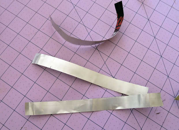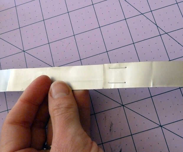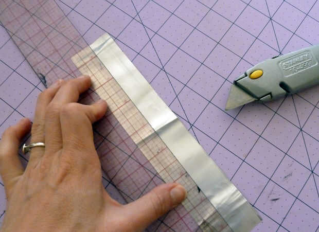 A continuación utilicé una regla para medir y guiar mi cuchillo para cortar las hojas en tiras largas (unos 3/4" ancho).