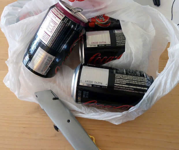 Luego corté una línea vertical a través de la lata con las tijeras.