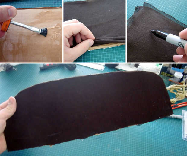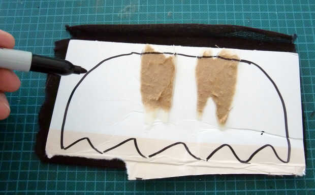Frotis de pegar en el lado opuesto de la cartulina con el esbozo de bigote, luego cuelgue tela de pasta y dejar secar. Si se aplica una capa fina de cemento debería tomar menos de 3 minutos que se seque, luego cortar forma de bigote a lo largo del contorno dibujado anteriormente.
