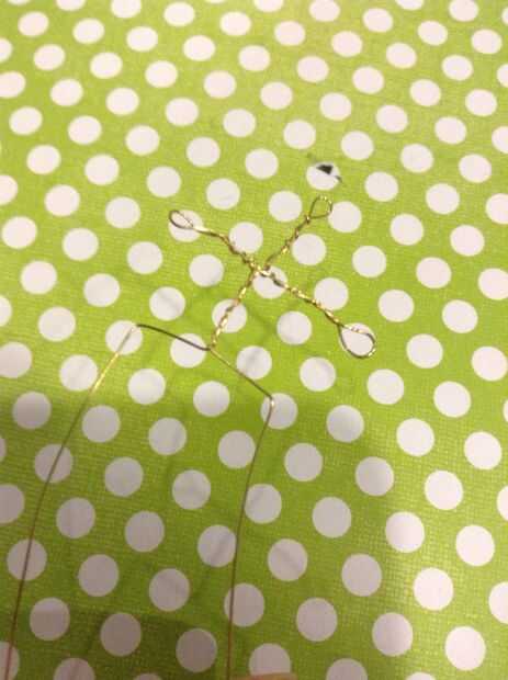 Ahora toma las 2 piezas si alambre y doblar a 90 grados. Y repetir el mismo proceso que hiciste con los brazos