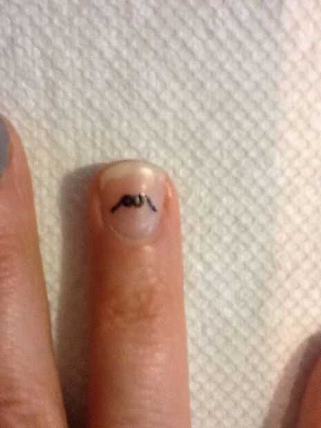 de uñas es divertido! No soy muy bueno en el arte de uñas pero pensé que sería divertido intentar algo que no sea esmalte para uñas. Por lo tanto, utilicé pintura de tela dorada con esmalte de uñas negro. Puede utilizar pintura de brillo también. Mis