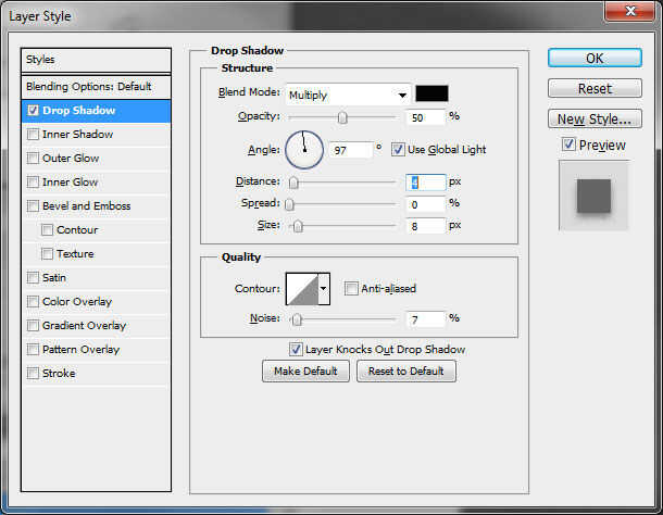 Si la forma de tu sombra no es totalmente perfecta, haga el efecto de "Sombra paralela" en el panel capas y elija crear capa. Luego utiliza el borrador o la herramienta Pincel para perfeccionar la forma de la sombra.