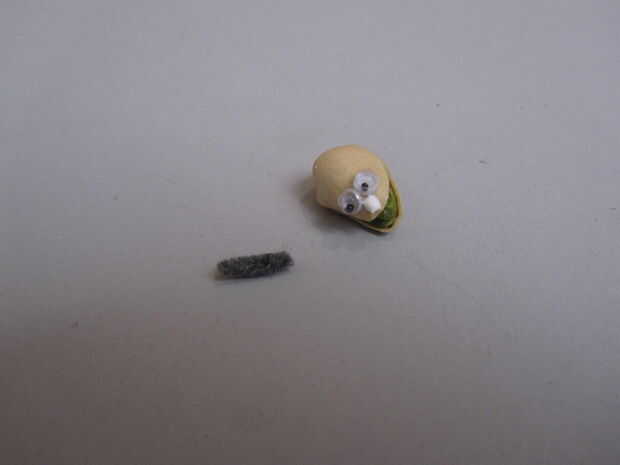 Cortar su bigote material a tamaño y forma. Pegar debajo de los ojos.