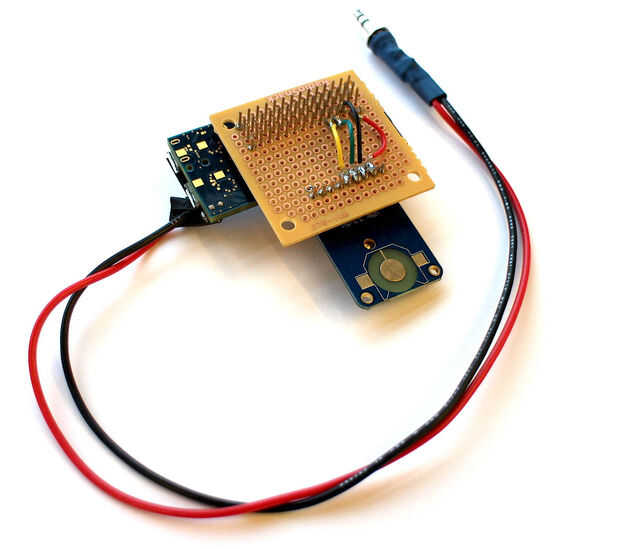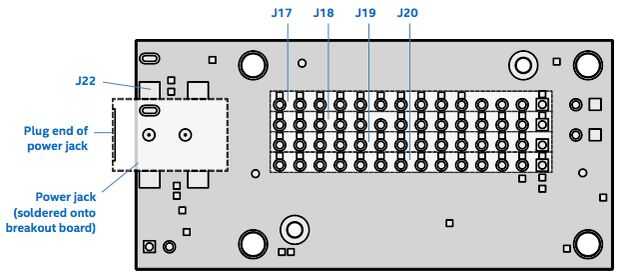 A continuación, empuje el desglose de Edison en el protoboard. En lugar de soldar todos sus 56 pernos en el protoboard, la soldadura sólo los pines de la esquina. También la soldadura de los cables entre las siguientes conexiones: