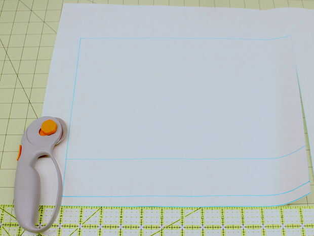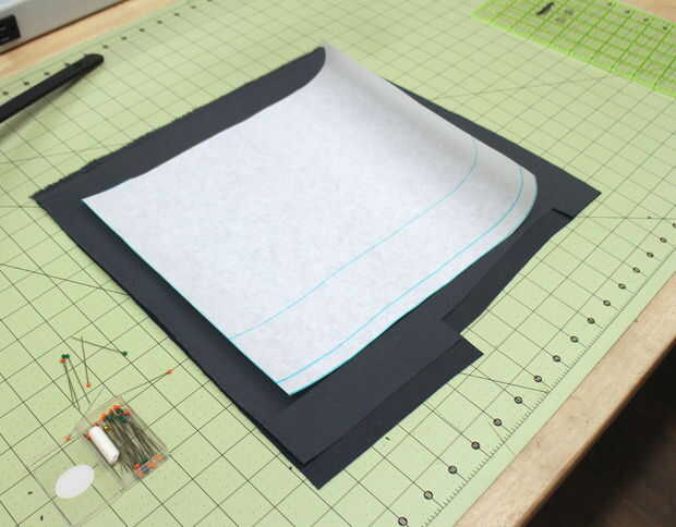 Cortar un 13 "x 10 5/8" pedazo de papel de pergamino. Doble un pedazo de Cordura en el medio y el papel a los lados superior e inferior del perno. Cortar todo el papel con tijeras dentadas. Ahora tienes dos 13 "x 10 5/8" piezas de Cordura. Siga los siguientes pasos para completar el respaldo.