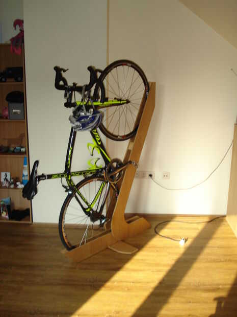 Cuando usted tiene una bicicleta costosa no quieres guardarlo en un garagebox o lo que sea. Es más interesante colocar la bicicleta en la sala de estar, habitación, etc.. Por lo tanto he diseñado un soporte de madera, que es fácil de crear.