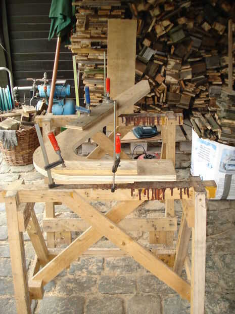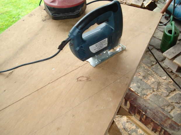 Cuando dibujó las líneas en la placa puede verlos con una sierra de calar. Es una buena idea para atornillar o sujeción de las piezas"doble" (horizontal & arco) juntos antes de cortar, de esta manera son idénticos.