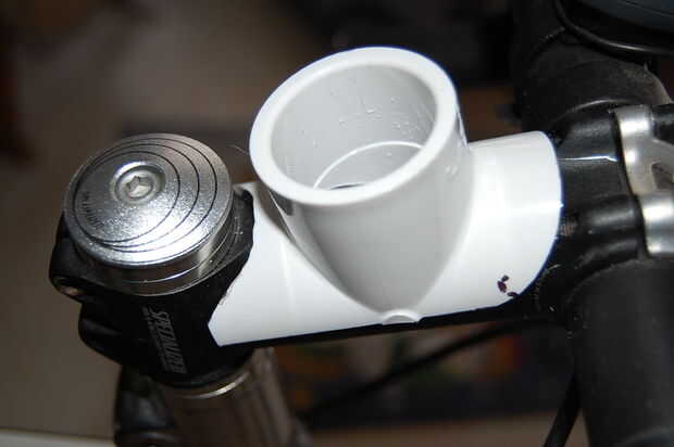 he utilizado una sierra de inglete para hacer los cortes rectos que limpia rápido cortes. La parte más lento fabrica 1" t, después de cortar por la mitad, para ajustar la potencia de la moto. Utilicé una herramienta dremel con un poco de lija a Ensenada por el extremo inferior se ajuste alrededor del tallo en la moto primero. Después de este ajuste corta el extremo superior más cercana al manillar para ajustar longitudinalmente entonces tomó la dremel y redondea los bordes para el alrededor de la curva inferior del manillar. De fijar los cortes así que dejo lo suficiente la tubería por encima (como yo) o por debajo de tan se pueden fijar a la madre con abrazadera de la manguera. Se trata de donde cortar el forro de goma intertube o estanque para caber entre el modificada Tee y el vástago de ajuste más estrictos y evitar resbalones.