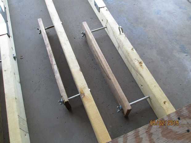 Las ayudas horizontales se llevan a cabo en cada extremo por dos piezas estrechas de madera contrachapada que abarcan todo el ancho