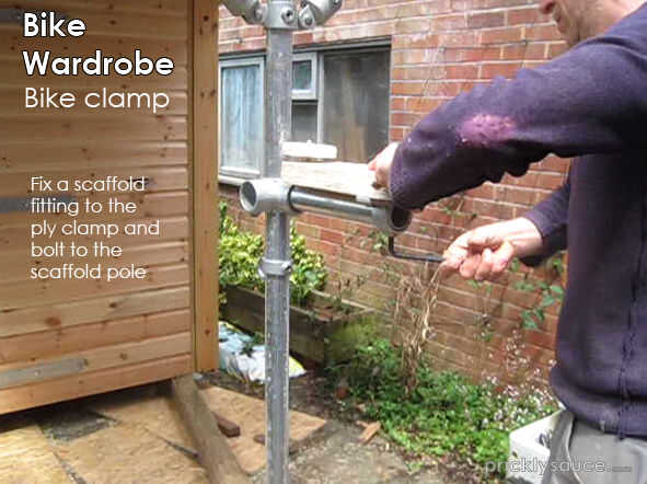 Todo era empernado a los andamios de vertiente y una bicicleta fue afianzado con abrazadera.