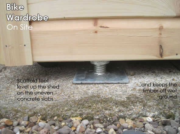 Los pies ajustables funcionaron muy bien haberme a nivel de toda la vertiente dentro de minutos. Éstos entonces fueron fijados a las losas de hormigón con anclajes de mampostería.