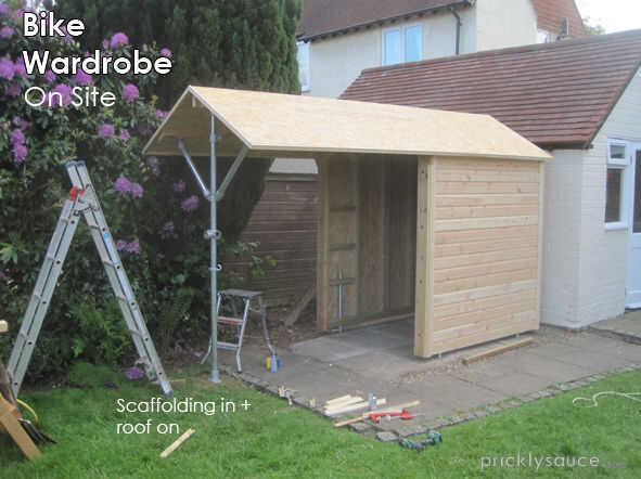 Yo había diseñado el cobertizo para previamente ser ensamblado como un paquete plano y sothe principal estructura subió muy rápido en el espacio despejado.