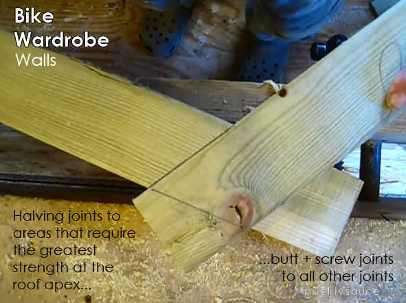 La única excepción fue en el extremo de la pared donde hice un empalme reducir en el ápice del techo para añadir fuerza a esta área. La madera de la cresta tiene que fijar en esto.
