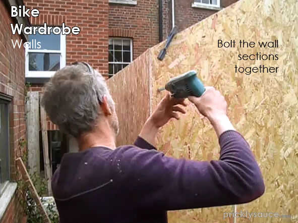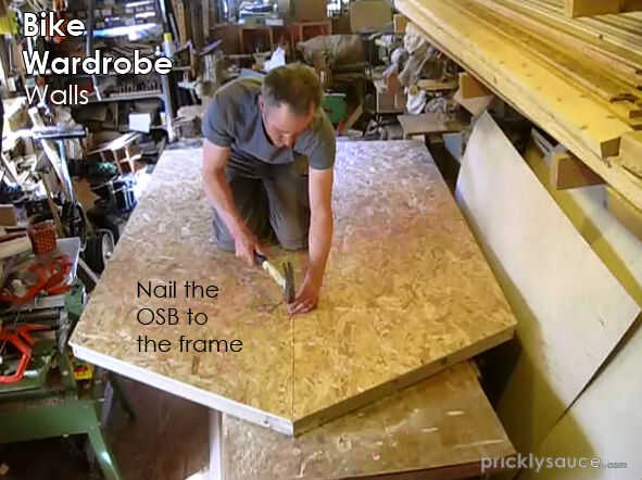 Los marcos fueron revestidos con OSB láminas [clavada]. Esto es hacia el puente de la estructura, agrega solidez y para hacer un galpón de seguro como una capa adicional debajo del shiplap exterior.