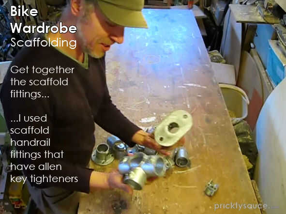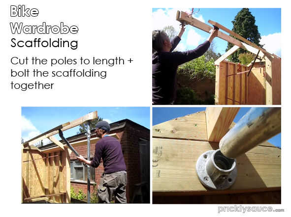 El diseño para el 'armario' tiene un poste horizontal deslizante fija a la pared posterior dentro el almacenamiento 'cobertizo'.