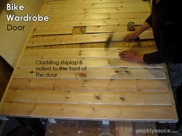Corte una ranura en el revestimiento de los cerrojos empujar a través y me fija el perno de tiro a la parte de atrás de la puerta.