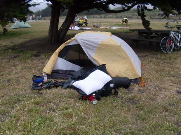 Al llegar a donde quieres que sea para la noche es el momento de encontrar un hotel o acampar. La opción más barata es para acampar seguro. En los parques de estado puede conseguir cuál es llamado un tipo de "Caminante-Biker" que fue alrededor de 7 dólares por persona para acampar (en comparación con 50 dólares!).