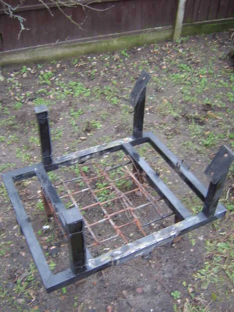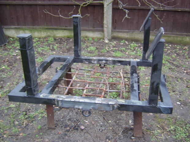 Habiendo ya hecho el paso de 'sólo madera' a 'mitad-mitad-metal y madera', empecé un diseño para un marcode metal. Uno en la computadora (usando Google SketchUp) había diseñado con pilares vertical extraíbles. Al final que usé 2" sección de caja de acero que tenía la fuerza era aún bastante luz. Yo pude han utilizado material más ligero pero no habría tenido la fuerza que estaba buscando. Subió con un diseño que podría ser utilizado no sólo para mi barco pero para el transporte, dando los ascensores, etc. también quería trabajar con más de una bicicleta. Yo había hecho más estrecha por 6" lo que es 2' de ancho, pero ligeramente más alto (por 3 pulg.) haciendo que la base del marco de la 1' de la tierra.