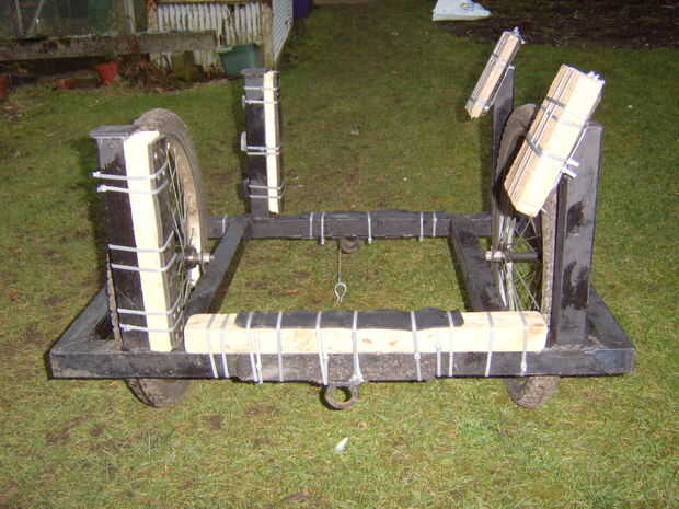 Así que antes de Navidad hice un prototipo de unos palés de madera tenía mintiendo acerca de. Yo solo estaba experimentando en este momento y así el resultado fue un poco un lío. Yo probé esa noche (tarde en la noche cuando los caminos eran claro!) y a mí (y de la familia) lo sorprenden fue un placer! Terminé usando para los próximos meses. Rompió un par de veces pero nada serio. En este punto fue suficientemente fuerte como para llevar más de 80kg!