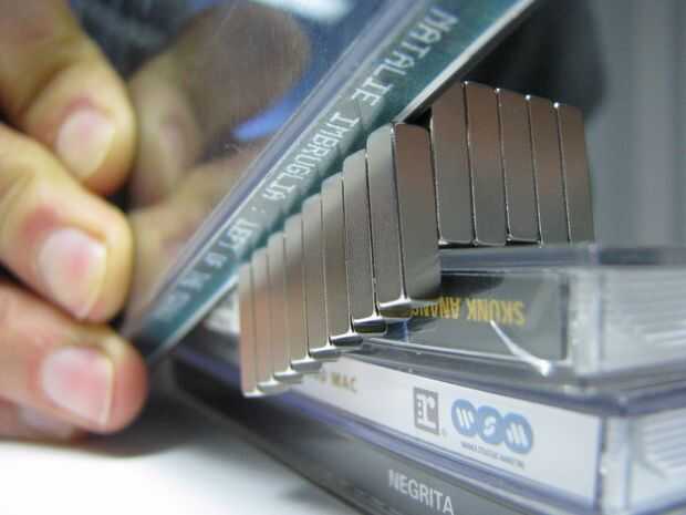 Para obtener el camino curva cuesta arriba pegan pequeños trozos de cinta adhesiva como se ve en la figura arriba para que este pequeño espesor había inclinado contacto entre los imanes. Si no puede soportar el grafito en el medio del camino que la carretera no está perfectamente horizontal, luego pone las hojas de papel para levantar la parte inferior de la carretera.