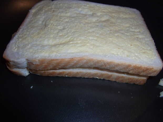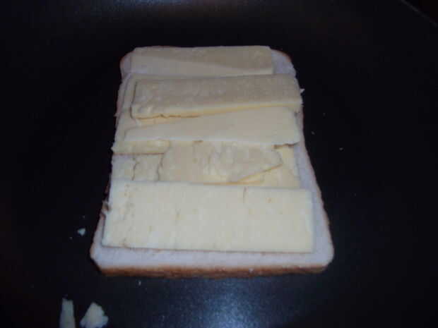 A continuación, obtener la otra rebanada de pan y coloque mantequilla hacia arriba ontop del queso y la otra otra rebanada.